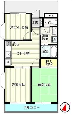 | 間取り | 3DK(DK6 洋6 洋4.5 和6) | 主要採光面 | 南 |